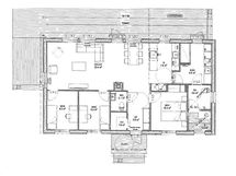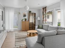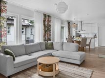 Kolme makuuhuonetta, valoisa tilava olohuone (varaava takka), ruokailutila, keittiö, kodinhoitohuone (uloskäynti pihalle), kylpyhuone, sauna ja erillinen wc. Säilytystilaa runsaasti: vaatehuone, paljon kaappitilaa + ulkovarasto!