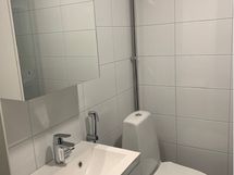 Suihku, Suihkuseinä, Pesukonevalmius, Peilikaappi, Allaskaappi, Laattalattia, Laattaseinä