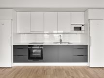 - Jääkaappi/pakastin, erillisuuni- ja taso, liesikupu/-tuuletin, astianpesukoneliitäntä, astianpesukone