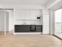- Jääkaappi/pakastin, erillisuuni- ja taso, liesikupu/-tuuletin, astianpesukoneliitäntä, astianpesukone