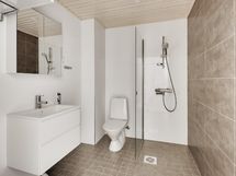 - Suihku, suihkuseinä, pesukoneliitäntä, lattialämmitys, kylpyhuonekaapisto, peilikaappi, allaskaappi