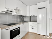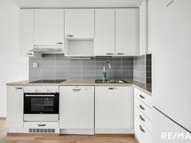 - Keittiön varusteet: Jääkaappipakastin, erillisuuni, liesi, astianpesukone ja liesituuletin. Liesi: Keraaminen liesi. Työtason materiaali: Laminaatti.