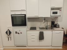 Asunnossa laadukkaat materiaalit mm. keraaminen liesi, astianpesukone ja jääkaappi pakastinlokerolla, parketti sekä lasitettu parveke.