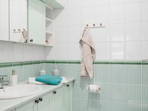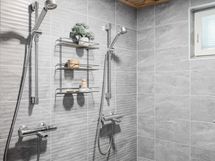- Pesuhuoneessa suihku, pinnat laatoitettu, lattialämmitys.
