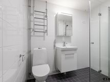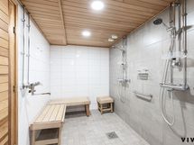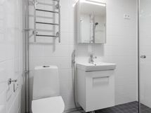 - Pesutilojen varusteet: WC-istuin, suihku, peilikaappi, allaskaappi, kuivauspatteri, suihkukaappi, pesuallas, bidee-suihku, pesukoneliitäntä ja lattialämmitys.