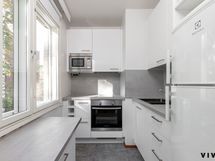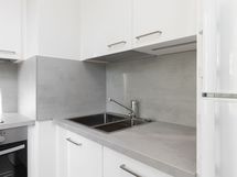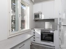 - Keittiön varusteet: Jenkkikaappi, mikroaaltouuni, erillisuuni ja liesituuletin. Liesi: Keraaminen liesi. Työtason materiaali: Laminaatti. Keittiöremontti 8 / 2019, Noblessa-keittiö, välitilassa suuret laatat.