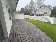 Tasaisella, suojaisalla ja hoidetulla pihalla on mukava viettää aikaa. Piha on lännen puolella, joten sinne paistaa kivasti aurinko isolle terassille ja koko pihalle. Terassilta on käynti lämpimään varastoon ja kaksi ovea lisäksi asuntoon sisälle.