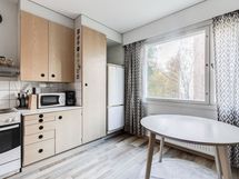- Liesi: sähköliesi. Työtasot: laminaatti. Kylmäsäilytys: jääkaappi/pakastin. Liesi ja liesituuletin, jääkaappi. Seinät osittain laatoitettu ja muutoin maalattu. Lattia laminaattia.