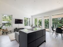 - Kivitasot, Integroidut koneet, Astianpesukone, Jää-pakastinkaappi, Tilaa isolle ruokapöydälle, Induktioliesi, Induktioliesi integroidulla liesituulettimella, Led- valaisimet, Tilavat kaapistot piilo vetolaatikoilla, integroitu mikro, integroitu uuni.