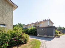 Heti vapaa reilun kokoinen perheasunto kahdessa tasossa. Keittiöön mahtuu hyvin ruokapöytä ja varusteisiin kuuluu mm. erillinen viileäkaappi sekä pakastinkaappi. Tilavaraus löytyy astianpesukoneelle. Asunnossa on hyvät säilytystilat ja tilavat huoneet, lisäksi löytyy erillinen lämmin irtainvarasto erillisrakennuksessa. Sekä ylä- että alakerrassa on kaksi makuuhuonetta. Alakerran kylpyhuoneen yhteydessä on iso varasto/vaatehuone. Asuintiloissa on laminaattilattia ja kylpyhuoneessa kovapinnoitteinen epoksilattia. Metsikköön rajoittuva suojaisa takapiha. Autopaikka saatavilla ja hyvä mahdollisuus myös toiseen paikkaan tarvittaessa.
