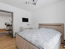 Avokeittiö, ruokailutila ja iso olohuone muodostavat yhdessä upean oleskelutilan. Saarekkeellinen keittiö tarjoaa modernin varustelun lisäksi mukavasti säilytys- ja tasotilaa. Makuuhuoneessa riittää tilaa ja valoa, kuten myös säilytystilaa lähes koko seinän mittaisen kaapiston muodossa. Sieltä on myös kulku istutuksin rajatulle patiolle, jolta avautuu leikkipihan puoleinen näkymä.