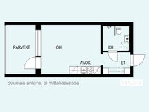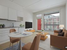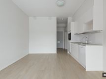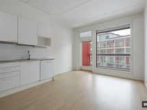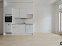 Tilastaan kaiken irti ottava avokeittiö on täysin varusteltu ja sen kupeeseen sopii jopa pieni ruokailuryhmä. Loput huoneesta voi hyödyntää sekä sohvan että sängyn sijoitteluun. Kylpyhuone on nykystandardin mukaisesti erittäin tilava ja esteetön. Kokonaisuuden kruunaa reilunkokoinen parveke, jolta avautuu rauhallinen näkymä korttelipihalle.