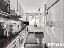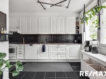 - Keittiön varusteet: Erillinen pakastin, astianpesukone, uuni, liesituuletin, liesi, jääkaappi (täyskorkea) ja pakastin. Työtason materiaali: Kivi.