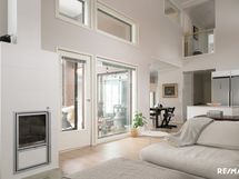 - 4h, avokeittiö, ph, khh, 2xkph, s, vh, autokatos, lämmin varasto, tt, terassi ja piha-alue