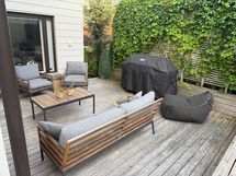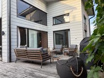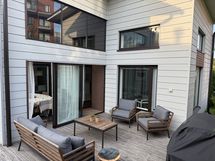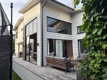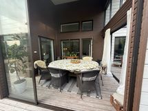 - Tilavat terassialueet talon länsi ja eteläpuolella. Osa terassista lasitettua.