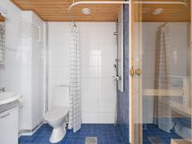 - Sauna, peilikaappi, pesukoneliitäntä, lattialämmitys, kiinteät valaisimet