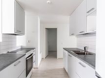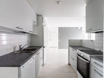 Toiseksi ylimmän, kuudennen kerroksen läpitalon huoneisto. Iso lasitettu parveke. Vakiona induktioliesi, jääpakastinkaappi ja astianpesukone.