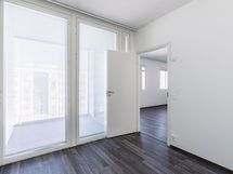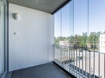 Kuudennen kerroksen koti, jossa iso lasitettu parveke.