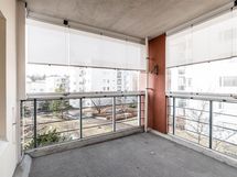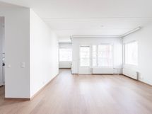 Perusparannuksesta valmistunut valoisa läpitalon päätyhuoneisto, ylin 3. krs. Lasitettu länsiparveke.