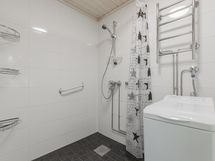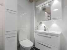 - Pesutilojen kuvaus: Lattialämmitys, suihku, peilikaappi, wc-istuin, allaskaappi, bidee, pesukoneliitäntä, pyyhekuivain.