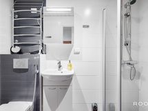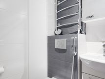 - Pesutilojen kuvaus: Kuivauspatteri. Varustus: suihkuseinä, wc-istuin, suihku, peilikaappi, kiinteät valaisimet, kylpyhuonekaapisto.