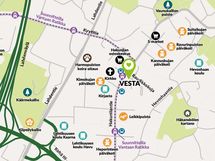 Bussipysäkki lähellä, sujuvat yhteydet omalla autolla, taksitolppa lähellä ja hyvät pyöräilytiet