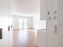 Kuudennen kerroksen yksiö, jossa ranskalainen parveke.