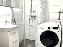 - Varustus: suihkuseinä, pesukoneliitäntä, wc-istuin, suihku, peilikaappi.