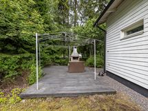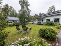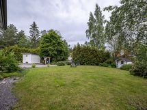 Tontti on suojaisa ja tilava, joten piha tarjoaa mahdollisuuksia niin puutarhaharrastuksiin kuin lasten leikkeihin.