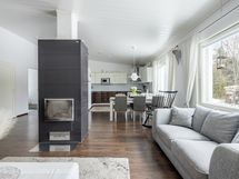 Talo on rakennettu yksitasoiseksi, joka tekee siitä käytännöllisen ja esteettömän. Suuret ikkunat tuovat valoa sisätiloihin, ja talon pohjaratkaisu on toimiva ja hyvin suunniteltu. Avarat oleskelutilat, moderni keittiö, käytännöllinen kodinhoitohuone ja tilava sauna tarjoavat mukavuutta arkeen. Makuuhuoneet ovat reilun kokoisia, ja säilytystilaa löytyy vaatehuoneesta ja kaapistoista.
