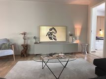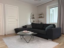 Pohjaratkaisu on mitä onnistunein ja huoneista löytyy juuri sopivasti tilaa pariskunnan tai pienen perheen arkeen ja juhlaan. Keittiö muodostaa ruokailu- ja oleskelutilan kanssa yhtenäisen kokonaisuuden, jossa on mukava hengailla ja viettää aikaa perheen tai ystävien seurassa. Värimaailma on maanläheinen, hyvin nykypäivän skandinaaviseen makuun sopiva. Huoneiston levyinen lasitettu parveke hemmottelee puistonäkymin. Parvekkeelle osuu aamupäivän aurinko joten auringon säteet eivät kuumenna tätä kotia.