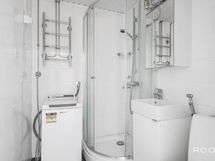 - Varustus: suihkukaappi, pesukoneliitäntä, wc-istuin, suihku, peilikaappi, kiinteät valaisimet.