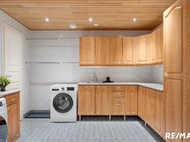 - Lämmin ulkovarasto, vaatehuone ja varasto x 2 kodinhoitohuoneessa +alakerrassa. Lisätietoja säilytystiloista: Sisällä kaksi varastoa, kodinhoitohuoneessa ja porrasaulassa, lämmin ulkovarasto autotallin oven vieressä ja vaatehuone yhden makuuhuoneen yhteydessä. Lisäksi kaapistot kahdessa makuuhuoneessa.