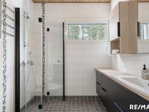 - Pesutilojen varusteet: Suihku ja lattialämmitys. Erillisen WC:n varusteet: WC-istuin, suihku, suihkuseinä, peili, lattialämmitys, lattiakaivo, allaskaappi ja pesuallas.