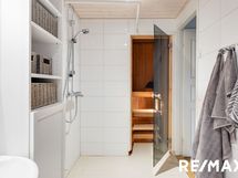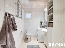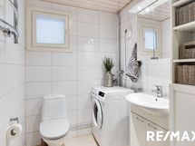 - Pesutilojen varusteet: WC-istuin, suihku, pesukoneliitäntä, lattialämmitys, peilikaappi, pesuallas, allaskaappi ja bidee-suihku. Pesutilojen kuvaus: Kylpyhuone remontoitu 2014.