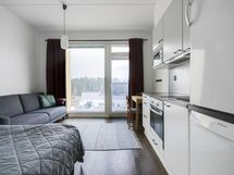 - Jääkaappipakastin, erillisuuni, liesitaso, liesituuletin, astianpesukone, kaapistot, kiinteät valaisimet.