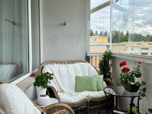 - sisään vedetty, lasitettu. Parvekkeen suunta: kaakko