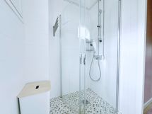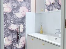 Suihkuseinä, Peilikaappi, Laattalattia, Allaskaappi, Laattaseinä, Erillinen WC