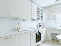 Paljon kaappitilaa, Paljon työskentelytilaa, Laminaattitasot, Astianpesukone, Induktioliesi, Jää-pakastinkaappi