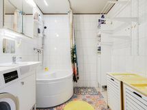 - Kylpyhuone, suihku, suihkuallas, erillinen wc, peilikaappi, allaskaappi, pesukoneliitäntä, kiinteät valaisimet.