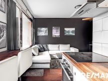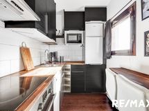 - Keittiön varusteet: Liesi, erillisuuni, astianpesukone, jääkaappipakastin, mikroaaltouuni ja liesituuletin (Aktiivihiilisuodatin). Liesi: Keraaminen liesi. Työtason materiaali: Puu.