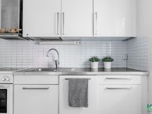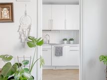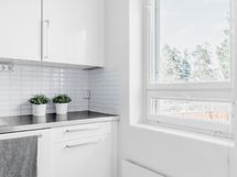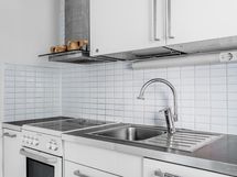 - Jääkaappi/pakastin, keraaminen liesi, astianpesukone, kaapistot, liesituuletin filtterillä