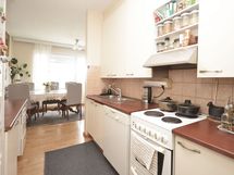 - Keittiön varusteet: Jääkaappipakastin, uuni, liesi, liesituuletin ja astianpesukone. Liesi: Valurautaliesi.