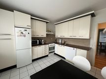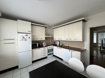 Tilaa isolle ruokapöydälle, Paljon kaappitilaa, Paljon työskentelytilaa, Astianpesukone, Keraaminen liesi, Liesituuletin, Jää-pakastinkaappi