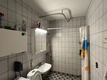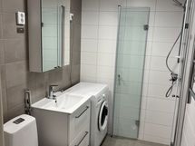 Suihku, Pesukone, Peilikaappi, Laattalattia, Laattaseinä