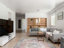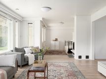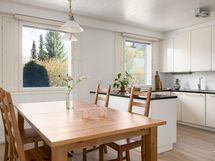 - Varustus: jääkaappi/pakastin, astianpesukone, kalusteisiin integroitu mikro, induktioliesi, kalusteuuni, liesituueltin (hormi), reilusti kaappitilaa, kivitasot, välitila laatta, tilaa isolle ruokapöydälle.