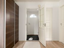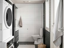 - Pesutilojen kuvaus: Kylpyhuoneessa kodinhoitotila ja wc. Käynti ulos.