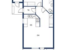 - Avokeittiö-olohuoneyhd., makuuhuone, eteinen, pesutila/wc, sauna, tuulikaappi. Kylmä ulkovarasto.
