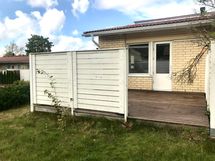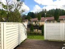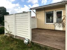 - Osittain aidattu avoterassi, johon käyntiovi olohuoneesta.