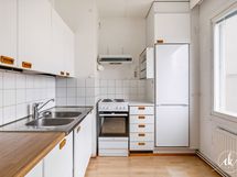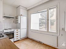- Keittiön varusteet: Jääkaappipakastin (Ei tietoa kunnosta), liesituuletin (Ei tietoa kunnosta) ja liesi (Uusittu 3.9.2024). Työtason materiaali: Laminaatti.